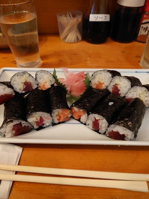 最近のお気に入りは唐揚げに酢サバの造り、そして、鉄火巻&明太子巻き。