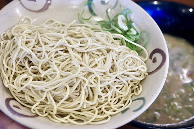 小麦の風味が味わえる極細麺も豚骨スープに