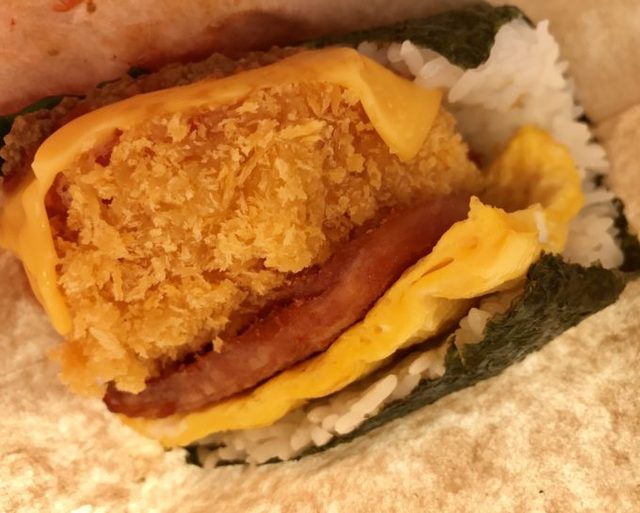 たまごと、ポークランチョンミートの厚さも計算しつくされたバランスぽく。