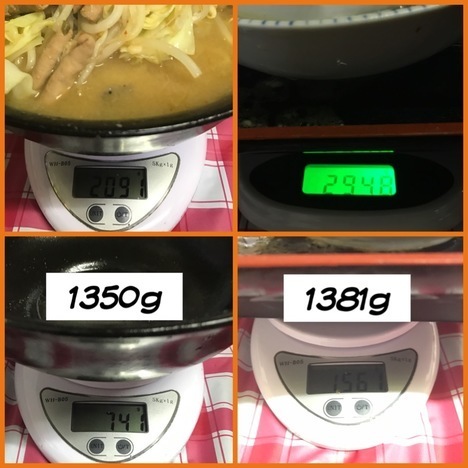 (ラーメン1350g+定食1381g+ドラさんのスープサルベージ分)