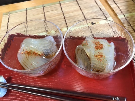 ◎わらび餅風こんにゃくとあんこ(メニューにない試作品)