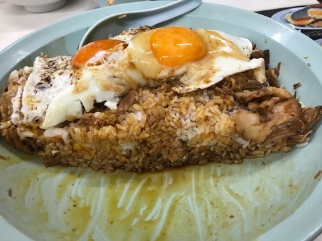甘辛いのタレをたっぷりまとった焼豚と目玉焼きは変わらず。