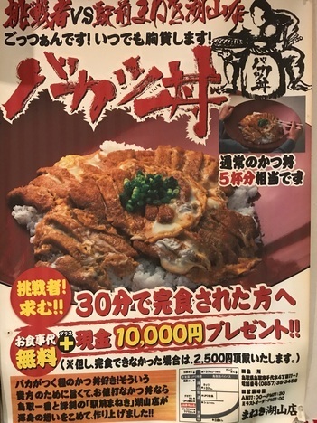 さらに通常のカツ丼5杯分のデカ盛りを、大食いチャレンジメニューとして完食で1万円の賞金が貰えるバカツ丼として実施中!