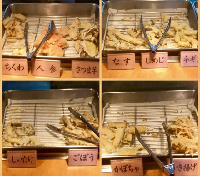 食べ放題驚異的なのは、天ぷら、うどん、ごはん、薬味、漬物等・・・