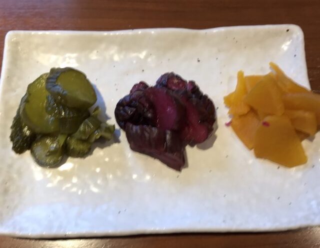薬味、漬物、タレ、かけつゆなども常備してあり。