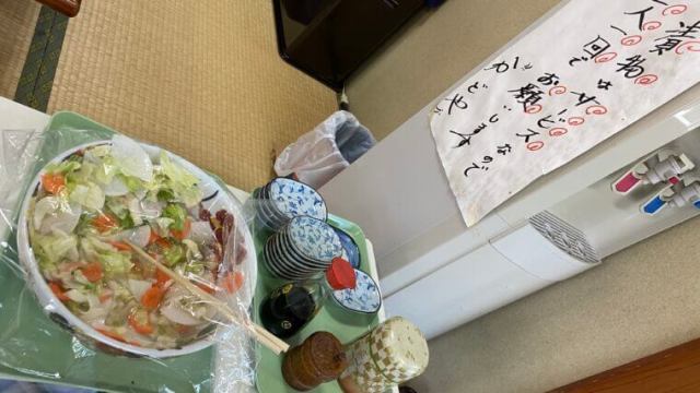 (うどん300g+そば700g+天ぷらとつゆと山盛り浅漬)