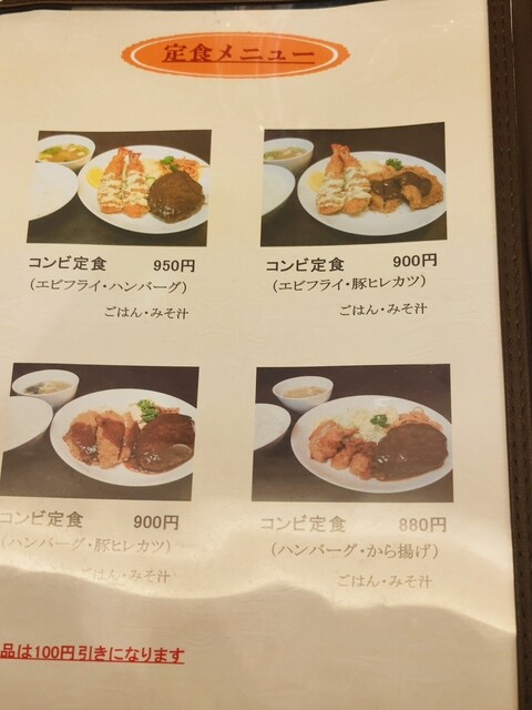 コンビ定食 [エビフライ+ハンバーグ]