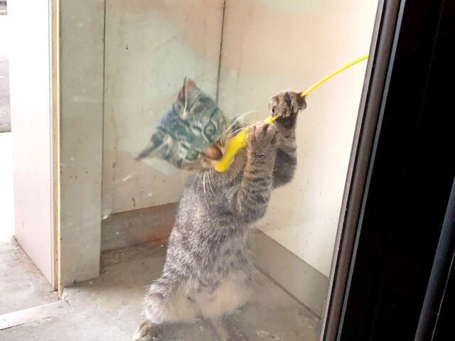 ガラス越しに戯れる