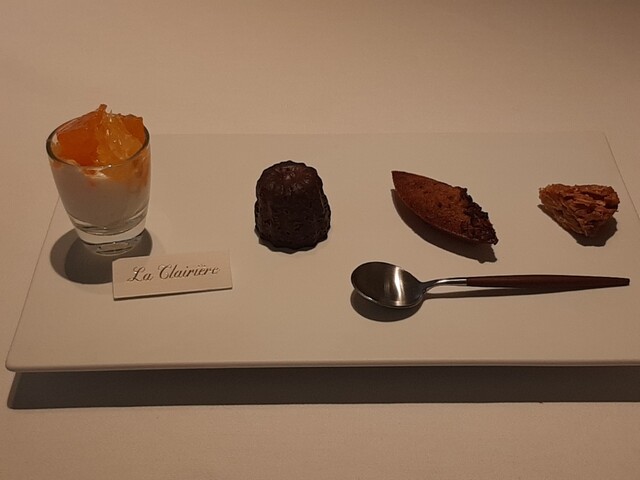 スイートレモンの果肉、カヌレ、ピスタチオのケーク、チョコレート