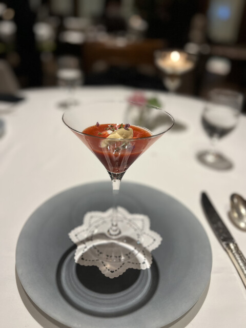 前菜その1は、冷製エビのコンソメジュレを選択。