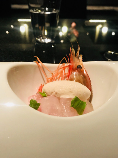 ○ボタン海老、金目鯛、ヒラメの上に、トムヤムクン風味のアイスクリームを。