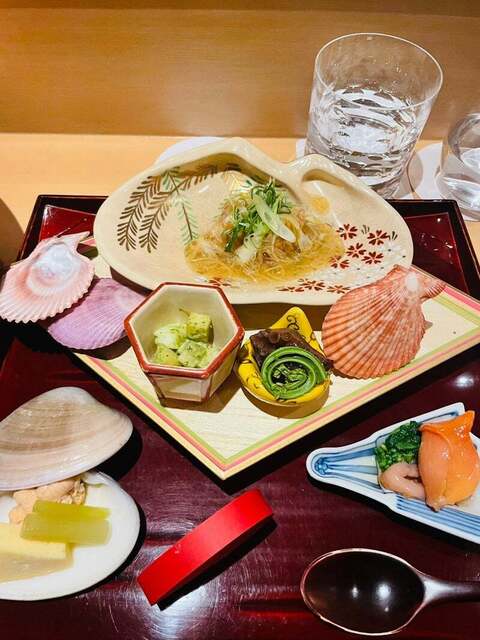 8月は氷鉢の鮑くずきりからでした♡ 銀座しのはら