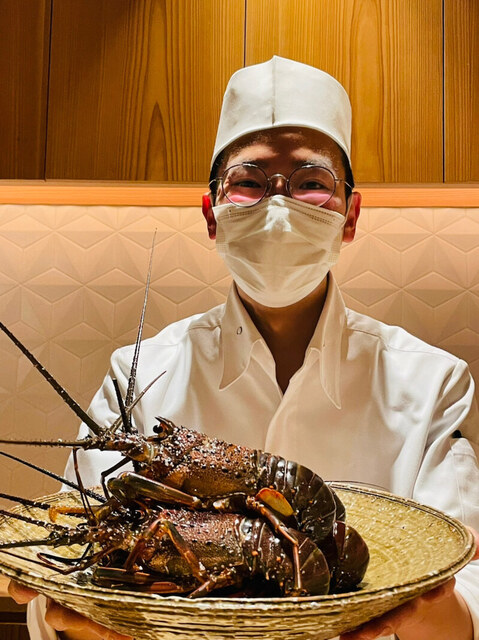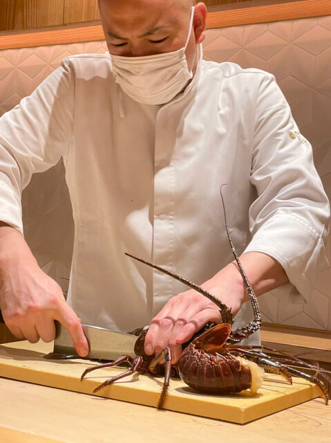 この日のお造りは、伊勢海老と平目。大将みずから伊勢海老をさばいていきます。