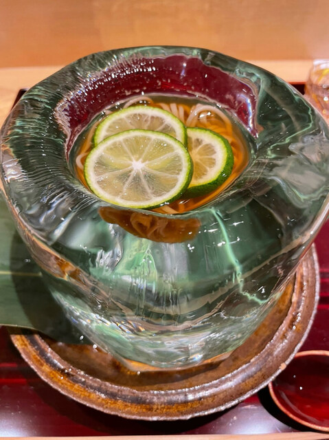 氷の生け花を楽しんでいるわけではありません。八寸の為です。