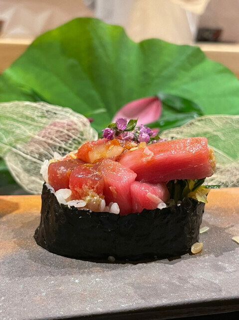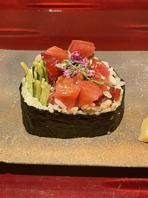 鮪巻きが、、、どんどん成長していって、そこらへんの鮨屋で食べるよりも美味しく感じるんですけど。