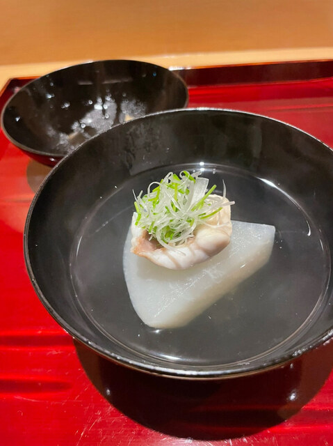 甘鯛のお椀には、聖護院蕪とからすみ餅。