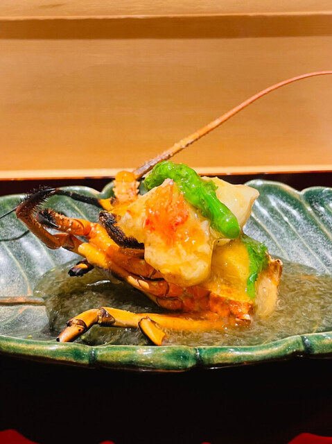 活き伊勢海老を炭で焼いて霙餡で頂きました。
