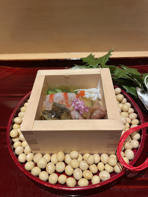 3日は節分もあったので、邪気を払うための鰯と柊を添えた先付からスタート。