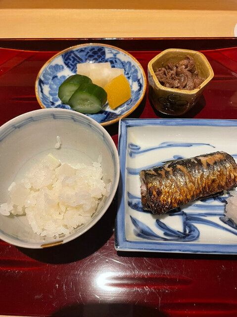 〆のご飯は大根ご飯に鰯、牛しぐれ、お漬物。