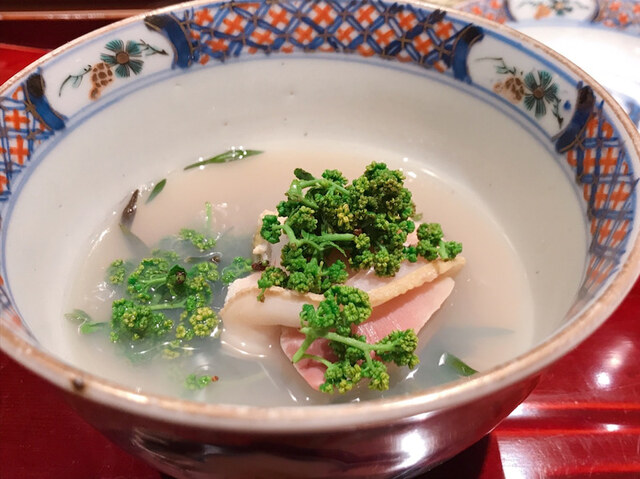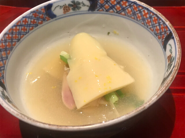 さて2018年のメニューも素晴らしいメニューでした。くじらのはいった白味噌のお椀や柚子窯、バチコやモロコ。