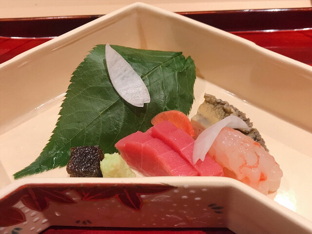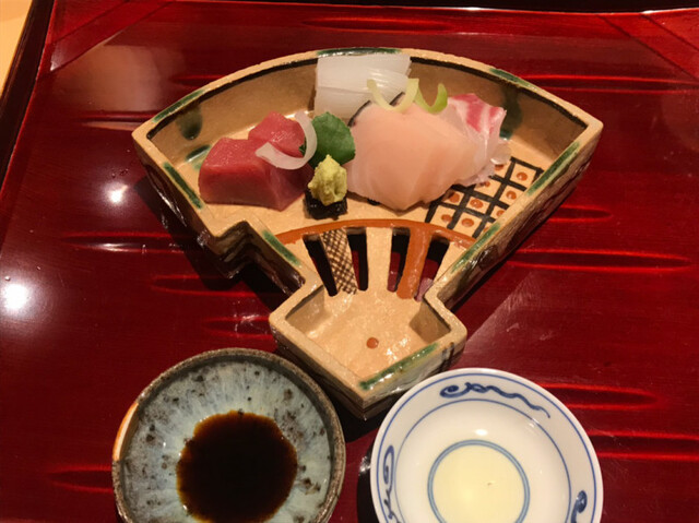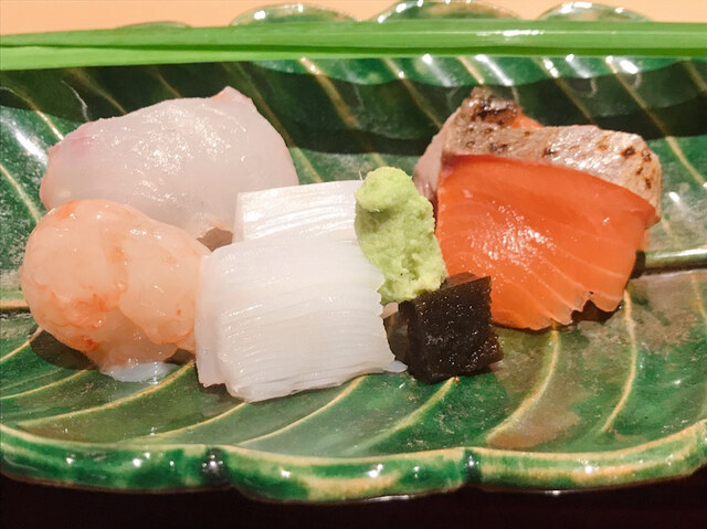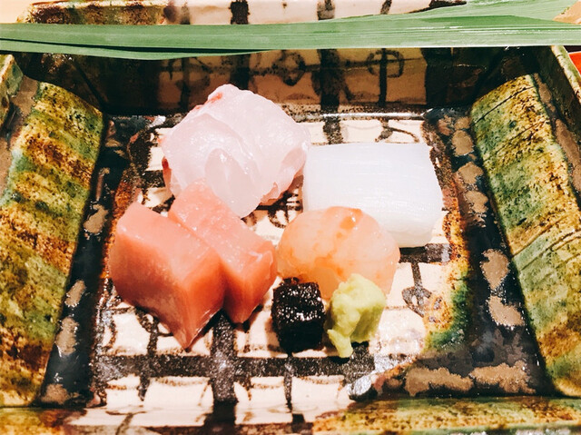 ・お造り(大間まぐろ、愛媛鯛、さわら、スミイカ)