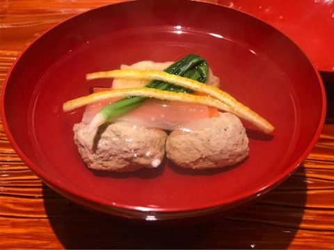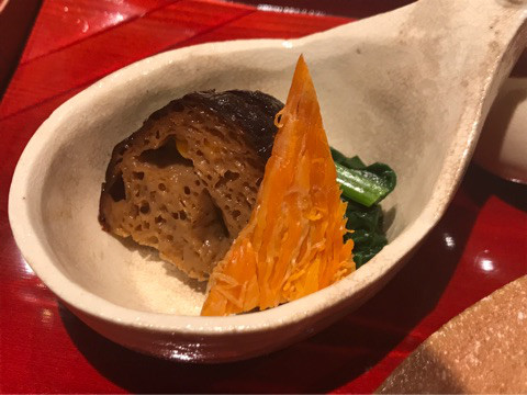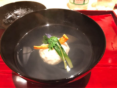 <お椀>赤穂鯛、蓮根、賀茂茄子、黄ニラ