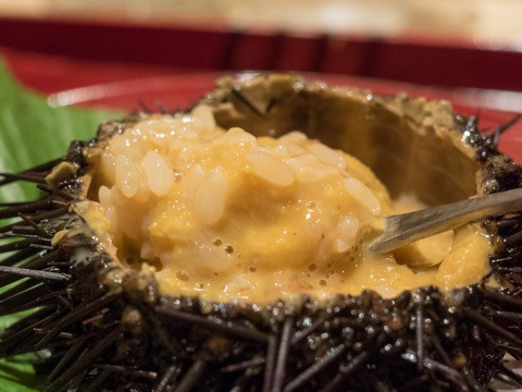 殻付き雲丹のリゾット混ぜ混ぜしているときなんて、全員がにやけ顔!