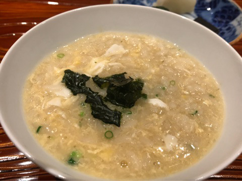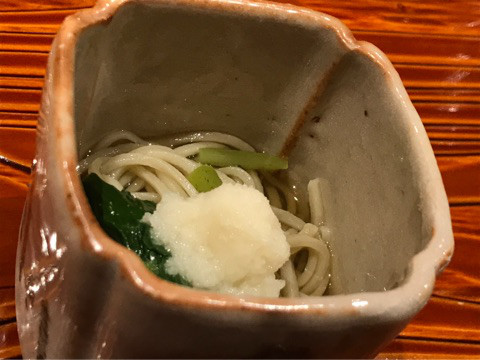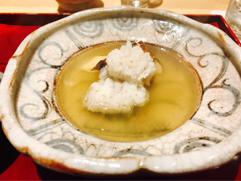 鱧と蛤をいただいたあとのスープに半田素麺と青白い卵を投入!!あれ?しのはらさんで麺が出てくるのって珍しい!以前、タイちゃんの手打ちそばってのはあったけどね♡
