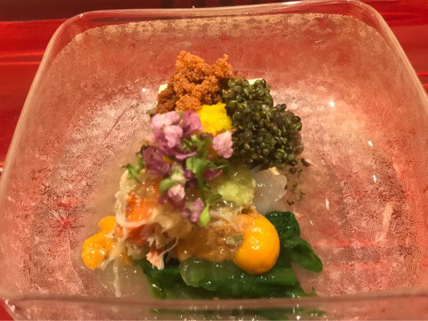 鱧、鮑、鰻に花山椒、雲丹、エビ、カニ、キャビア、ロワールのホワイトアスパラ、、、