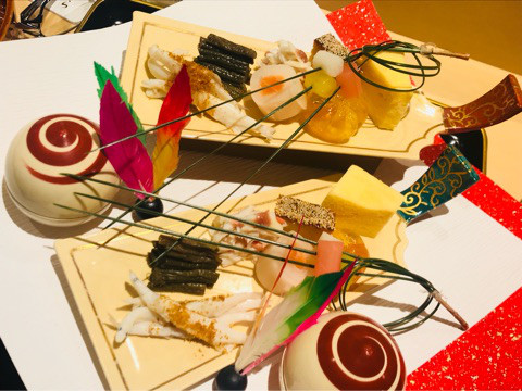 <八寸>6月ということで、茅の輪をイメージして。「夏越えの祓い」なので、みんな腕を通しておりました。