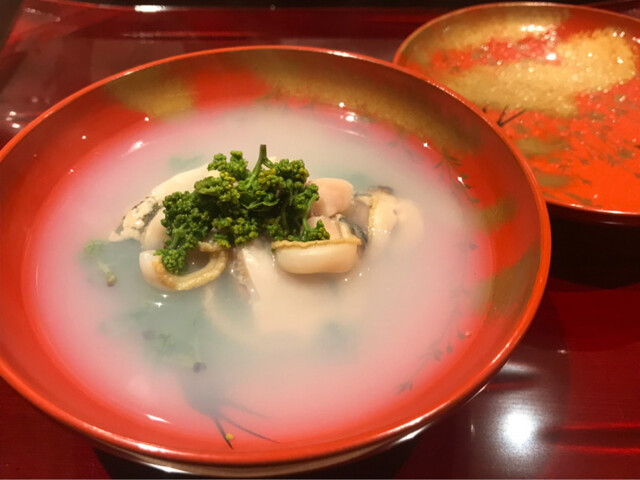 大きな蛤を目の前でグツグツ調理して、ワカメとたっぷりの山椒の芽と一緒に頂くのは、本当に感動もの!