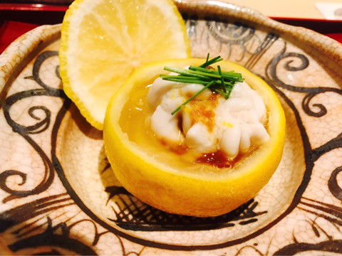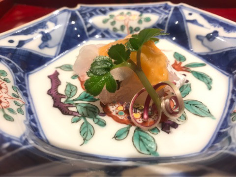 ・鮑、雲丹、白魚、京ニンジン、山芋、山椒、土佐酢ジュレ