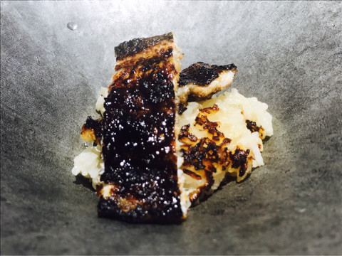 目の前で串刺しにしてゆっくり炭火で焼いているそばから、脂が滴っていて、炭にたらたら落ちてる位。食感は本当に太刀魚?っていうくらいに濃厚でした。