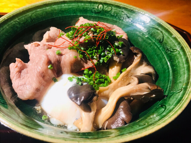 A5ランクのすきやきなんぞもいただきまして。温泉たまごが最強のサポート!