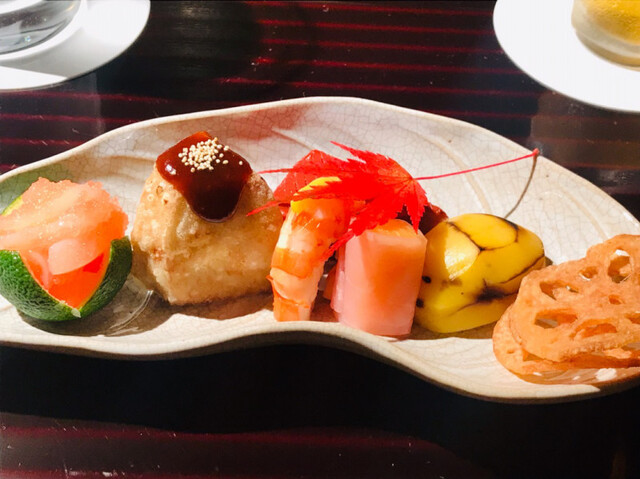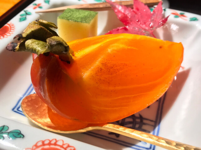 ・先付…柿クリームチーズ、海老からすみ、鰊、近江こんにゃく、蟹なます、蕾菜