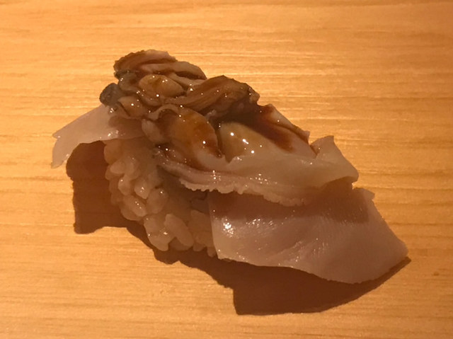 ・苫小牧 北寄・・・甘みがMAXになるように軽くあぶってあります。「私の師匠のふるさと、苫小牧の北寄です」とおっしゃる大将。一気に色々な意味でファンになりました。