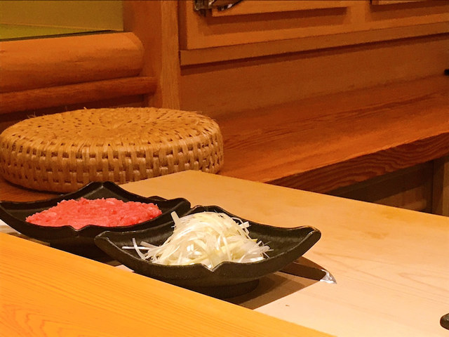 靴を脱いでスリッパに履き替え、L字カウンターのセンターに通して頂きました。