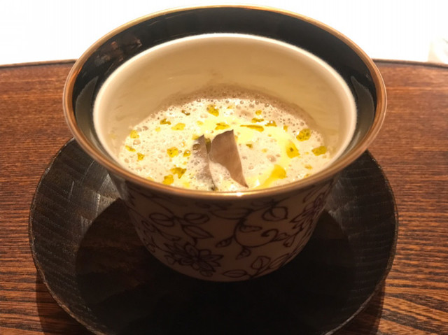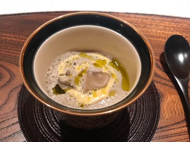 ・舞茸とアボガドオイルのスープ。香りだかくてこれは美味しい!