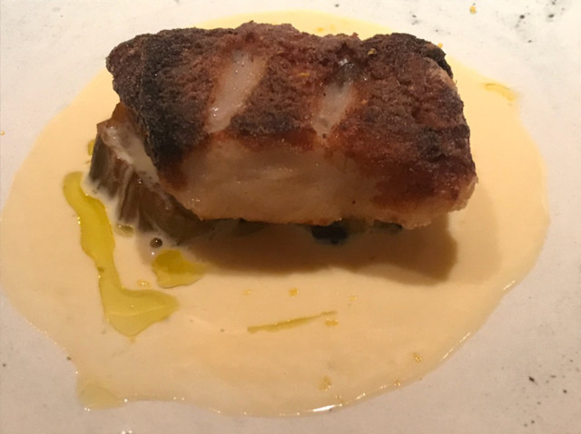 甘鯛西京焼き、茄子、ワインと柚子のソース