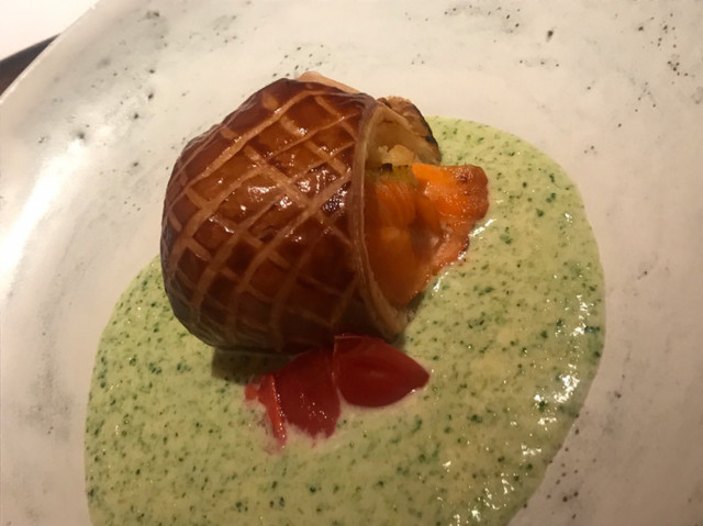 ・サーモンのパイ包み ブロッコリーソース