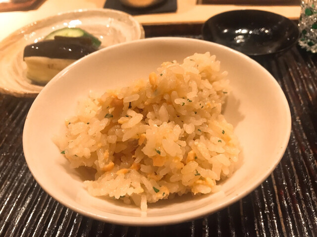 鮎をカリカリに焼いて乗せたもの。食感がとても面白くて美味しかったなぁ♪