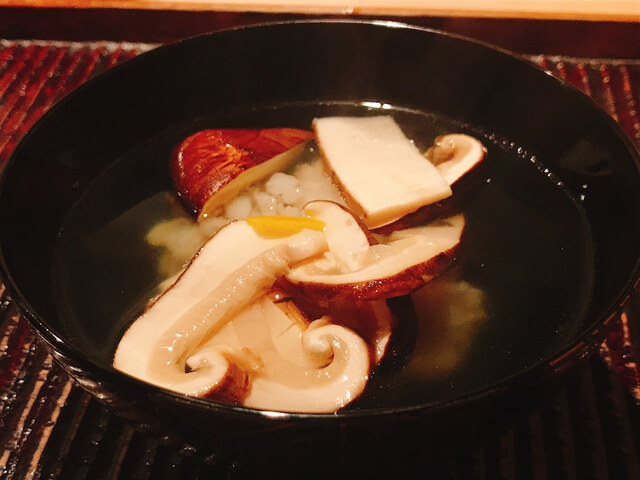 若筍や椎茸などのほっこりするお椀。柚子の香りが幸せを呼び戻します。