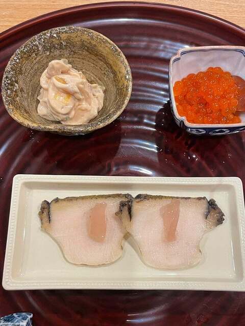 ・鯛(塩昆布と海苔を添えて)、煎酒