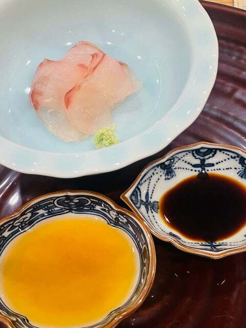 ・鯛のお造り(昆布締め)煎り酒、醤油、山葵