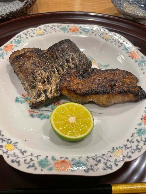 高級魚、アブラボウズを贅沢に炭火で焼いてもらいます。