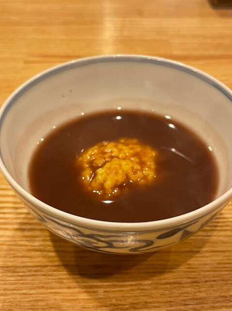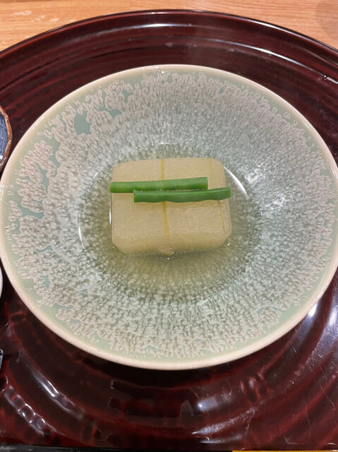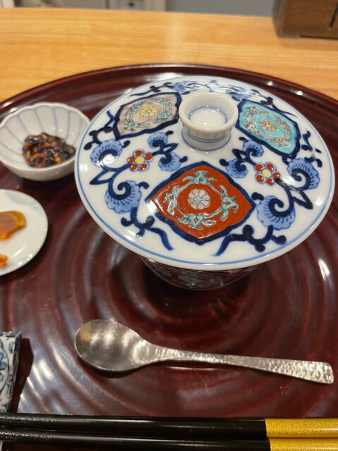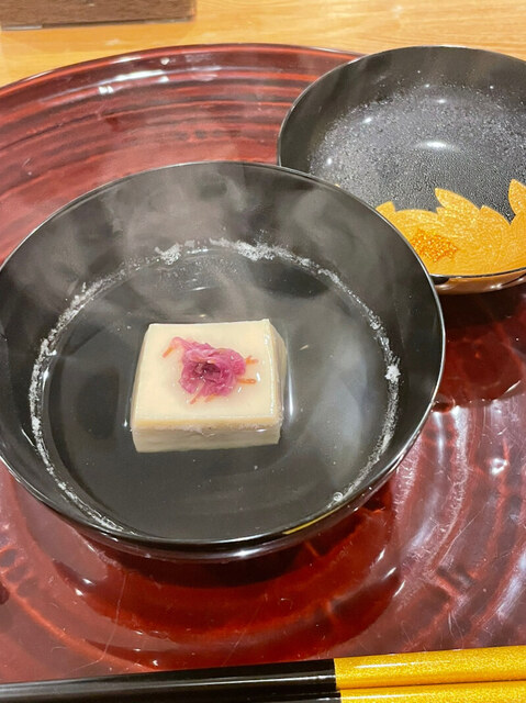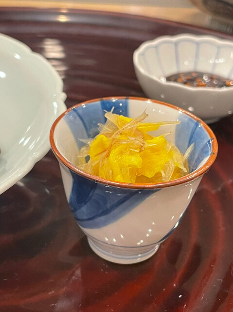 一品目はお出汁がたっぷりきいた茶碗蒸しからですが、この日は冷たい茶碗蒸しを。
