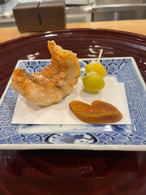 ・牛蒡の唐揚げ、新銀杏、自家製からすみ