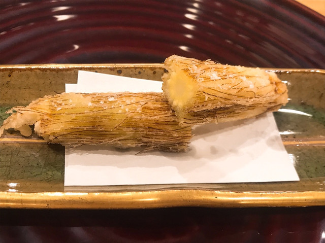 この時期ならではのヤングコーンの天婦羅。塩をパラパラとかけてあるだけなのに、甘味がMAX!