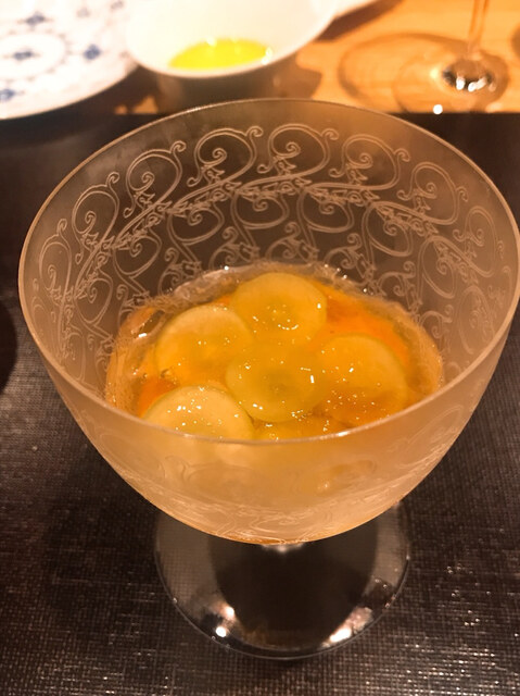 2皿目…雲丹とキャビアとコンソメジュレがシャンパンにとても合います♡