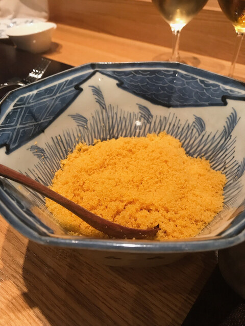 大きな鉢に入ったカラスミパウダー♪美味しすぎて笑っちゃう。